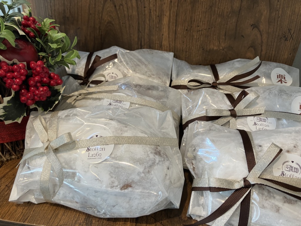 店舗内のシュトーレン 美しくリボンを掛けていただきました。✨